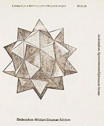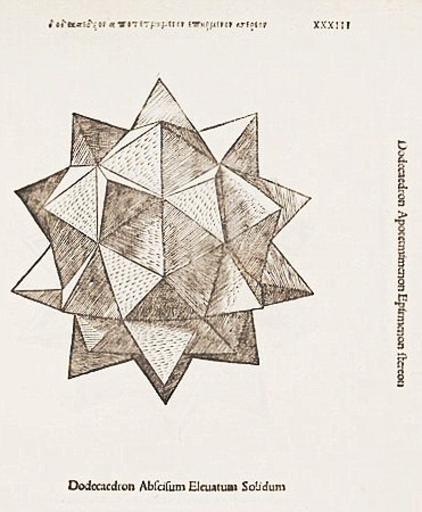 Keywords: Stellated Dodecahedron Luca Pacioli and Leonardo da Vinci 1509.jpg en Stellated Dodecahedron from De divina proportione by Luca Pacioli woodcut by Leonardo da Vinci Venice 1509 1509 http //www maa org/publications/periodicals/convergence/mathematical-treasures-de-divina-proportione-by-luca-pacioli Luca Pacioli Leonardo da Vinci other versions Custom license marker 2015 06 07 PD-old-100 Uploaded with UploadWizard Woodcuts Luca Pacioli Geometric studies by Leonardo da Vinci Polyhedral stellations De divina proportione |