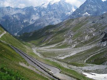 Keywords: stelvio stelvio yoke mountain pass pass road mountains alpine curves zig zag road paved high landscape