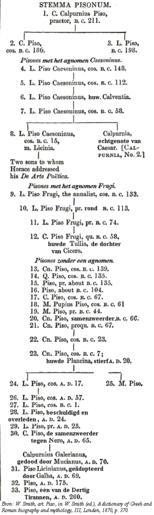 | Keywords: Stemma Pisonum.gif Family tree of the Roman family of the Pisones belonging to the Gens Calpurnia Scanned from W Smith art Piso in W Smith ed A dictionary of Greek and Roman biography and mythology III Londen 1870 p 370 Bron W Smith art Piso in W Smith ed A dictionary of Greek and Roman biography and mythology III Londen 1870 p 370 PD-old original upload log page nl wikipedia Stemma_Pisonum gif 2005-08-07 09 23 Evil berry 362×1210×8 33861 bytes <nowiki>Bron W Smith art Piso in W Smith ed A dictionary of Greek and Roman biography and mythology III Londen 1870 p 370 PD Categorie Afbeelding stamboom</nowiki> Gens Calpurnia Family trees Ancient Roman families The Dictionary of Greek and Roman Biography and Mythology |