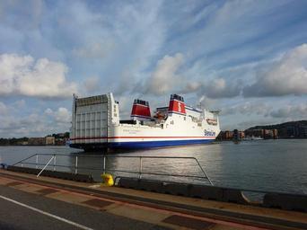 Keywords: Stena Jutlandica 1.JPG sv Stena Jutlandica håller på att lägga till vid Masthuggskajen i Göteborg Bo Randstedt Danica 2009-07-29 Cc-zero Stena Jutlandica ship 1996