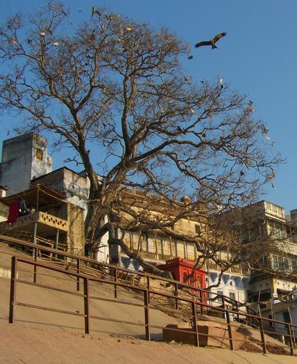 Keywords: steps river side ganges ganga bank barricades bathing ghats buildings varanasi india