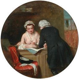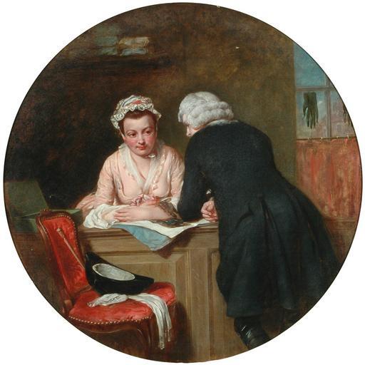 Keywords: Sterne and Grisette by Abraham Solomon CCWSH1158.jpg Sterne's novel 'A Sentimental Journey' where the narrator Parson Yorick is seeking help with directions from a particularly attractive glove-seller She is extremely helpful and Yorick finds her so charming and thoughtful that he cannot believe that she can behave with such consideration Can she be real Can he believe in her sincerity by verifying that she indeed has evidence of her beating heart He must take her pulse to be convinced Solomon ™s painting leads the eye to and fro in a restless journey taking in all the components of an intimate encounter between a man and a woman 1852 Technique oil canvas Size cm 50 8 50 8 Institution Laurence Sterne Trust object history exhibition history Exhibited at the Royal Academy in 1852; Sotheby's Belgravia 10th July 1973 miscatalogued as 'In the Haberdashers' ; Philips 22nd October 1973 miscatalogued as 'The Purchase of a Pair of Gloves' credit line Courtesy of the Laurence Sterne Trust accession number http //www laurencesternetrust org uk/collection/details php item 36130 CCWSH1158 place of creation Laurence Sterne Trust Images PD-old-100 Uploaded with UploadWizard Abraham Solomon Books by Laurence Sterne Rococo revival paintings |