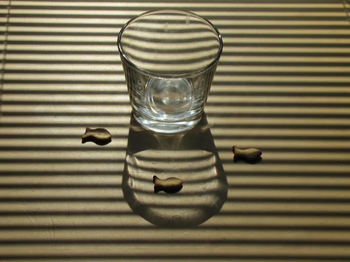 MAKE A MEME View Large Image still life fish glass of water cookies water strips jalousie shadow