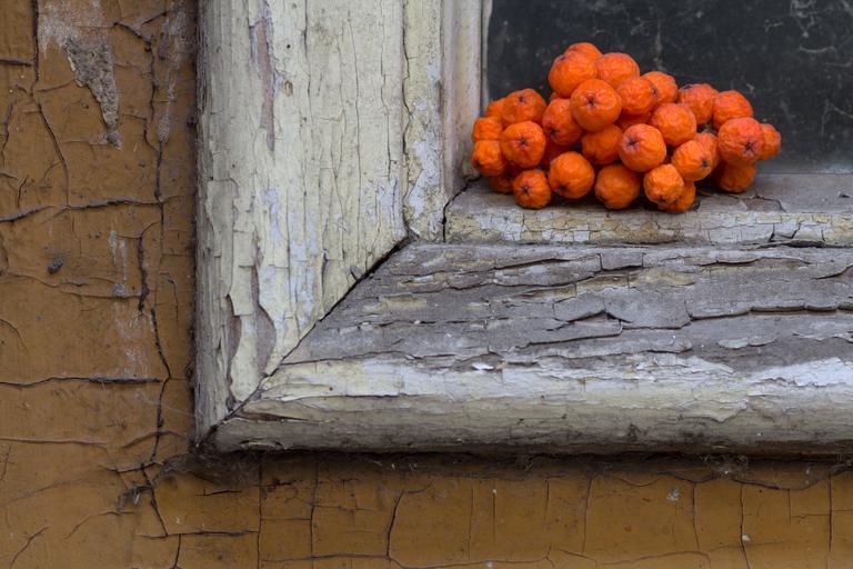 Keywords: still life front door wood old window mountain ash berries old paint