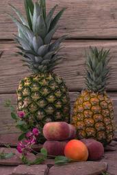 Keywords: still life fruit pineapple flowers apricots