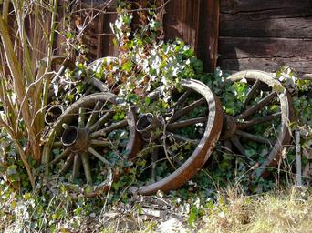 Keywords: still life old wheels farmhouse
