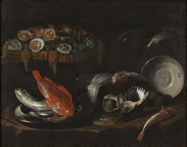 | Keywords: Still Life with Fish and Oysters (Giovanni Battista Recco) - Nationalmuseum - 17762.tif Artwork Creator Giovanni Battista Recco Still Life with Fish and Oysters A member of a distinguished Neapolitan family of still life painters Recco s artistic development was influenced by both Roman Caraveggesque and Spanish still life painting This fish still life makes an immediate impression for its multiplicity of glistening tones their intensities heightened by the contrast with the dark interior s neutral values Recco had the capacity to reconcile the humblest subjects and a strong naturalistic bias with a sense of intimacy and compositional restraint With their warm colouring and expressive use of paint his still lifes reveal a deep feeling for everyday life Recco tillhörde en vÀlkÀnd neapolitansk konstnÀrsfamilj vars medlemmar specialiserat sig pÄ stillebenmÄleri I sin konstnÀrliga utveckling pÄverkades han sÄvÀl av de romerska caravaggisterna som av spanskt mÄleri Fiskstillebenet gör ett omedelbart intryck genom sin mÄngfald av glÀnsande fÀrgtoner vars intensitet förhöjs genom kontrasten med den mörka interiörens neutrala valörer Recco förenar i sitt mÄleri de mest ansprÄkslösa motiv och en stark naturalism med en atmosfÀr av intimitet och ÄterhÄllsamhet Genom sin varma fÀrgskala och breda penselföring prÀglas hans stilleben av en innerlig kÀnsla för vardagliga ting header A member of a distinguished Neapolitan family of still life painters Recco s artistic development was influenced by both Roman Caraveggesque and Spanish still life painting This fish still life makes an immediate impression for its multiplicity of glistening tones their intensities heightened by the contrast with the dark interior s neutral values Recco had the capacity to reconcile the humblest subjects and a strong naturalistic bias with a sense of intimacy and compositional restraint With their warm colouring and expressive use of paint his still lifes reveal a deep feeling for everyday life Recco tillhörde en vÀlkÀnd neapolitansk konstnÀrsfamilj vars medlemmar specialiserat sig pÄ stillebenmÄleri I sin konstnÀrliga utveckling pÄverkades han sÄvÀl av de romerska caravaggisterna som av spanskt mÄleri Fiskstillebenet gör ett omedelbart intryck genom sin mÄngfald av glÀnsande fÀrgtoner vars intensitet förhöjs genom kontrasten med den mörka interiörens neutrala valörer Recco förenar i sitt mÄleri de mest ansprÄkslösa motiv och en stark naturalism med en atmosfÀr av intimitet och ÄterhÄllsamhet Genom sin varma fÀrgskala och breda penselföring prÀglas hans stilleben av en innerlig kÀnsla för vardagliga ting 1653 Oil on canvas Olja pÄ duk Size cm 126 100 Framed Size cm 151 124 7 Institution Nationalmuseum Stockholm Signerad G B R 1653 accession number 17762 NM 759 place of creation Erik Cornelius / Nationalmuseum Nationalmuseum Stockholm cooperation project Licensed-PD-Art PD-old-auto PD-Nationalmuseum_Stockholm 1660 Media contributed by Nationalmuseum Stockholm 2016-10 Paintings in the Nationalmuseum Stockholm Giovanni Battista Recco |