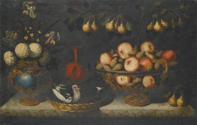 Keywords: Still Life with Flowers in Vase, Apples & Pears by Bernardo Polo.jpg en Still Life with Flowers in a Gilt-Mounted Bluestone Vase and a Bowl of Apples with a Sprig of Pears by Bernardo Polo c 1650-75 oil on canvas 73 by 112 cm Sotheby's Bernardo Polo c 1650-75 Bernardo Polo PD-old-100 |