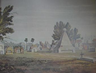 | Keywords: StLouisCem1JHBLatrobe1834.jpg  New Orleans View of St Louis Cemetery 1 1834 by John H B Latrobe Note the masts of sailing ships in the Carondelet Canal visible in distance The distinctive pyramid with a knob tomb is of the Varney family; 2007 photograph Color sketch by John H B Latrobe 1834 Via reproduction in book New Orleans Architecture Vol III The Cemeteries by Leonard V Huber 1834 J H B Latrobe John Hazlehurst Boneval Latrobe 1803-1891 PD-Art 1834 in New Orleans St Louis Cemetery 1 New Orleans in art |