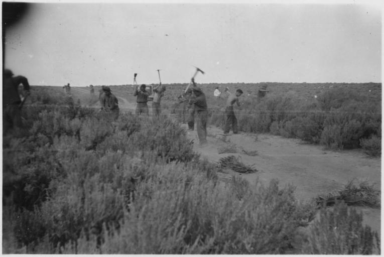 | Keywords: Stock Driveway. Clearing and widenig the Stock Driveway - NARA - 298353.jpg Scope and content Camp DG 4 is located one mile southwest of Springfield Idaho in the SE 1/4 Section 14 Township 4 South Range 32 East It is occupied by CCC Company 990 from Big Sur State Park 12 Monterey District California The work area of this camp lies in Grazing District No 3 It is located about one mile from the rail head Construction of the Camp was begun by the advanced detail on May 1 It was occupied by the main body May 15 Field work was begun May 30 General notes 298353 Local identifier Department of the Interior Bureau of Land Management Idaho State Office Burley District Office 07/16/1946 NARA's Pacific Alaska Region Seattle NRIAS 6125 Sand Point Way NE Seattle WA 98115-7999 other date ~ 1935 Record group Record Group 49 Records of the Bureau of Land Management 1685 - 2006 Record group ARC 378 Range Improvement Soil and Moisture Conservation Project Files compiled ca 1935 - ca 1947 Series ARC 298326 File unit CCC Camp DG-4 Springfield Idaho ca 1925 - ca 1930 File unit ARC 298327 Variant control numbers NAIL Control Number NRIS-49-BURLEYRANGEIMP-DG4SPRING-14D Other versions <gallery> File Stock_Driveway _Clearing_and_widenig_the_Stock_Driveway_-_NARA_-_298353 tif tif File Stock_Driveway _Clearing_and_widenig_the_Stock_Driveway_-_NARA_-_298353 jpg jpg </gallery> NARA-cooperation PD-USGov Camp DG 4 Idaho Civilian Conservation Corps |