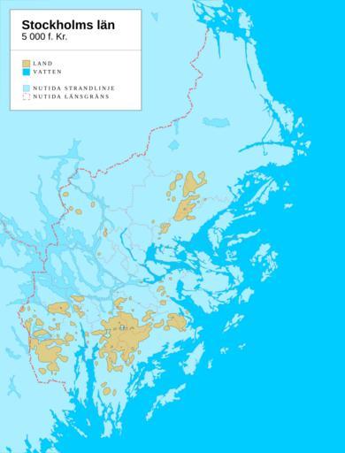 | Keywords: Stockholm county 5000-BC.svg en The Stockholm area around 5000 years BC 7 000 BP The map shows post-glacial rebound and shoreline displacement in comparison with present-day Stockholm county The extent of land at the time yellow was smaller than today with water blue tones covering areas that are above the shoreline today Present-day shorelines county and municipality borders shown for comparison sv Stockholmsområdet omkring 5 000 år f Kr 7 000 år före nutid Landytorna gult var begränsade jämfört med idag Vatten blåa nyanser täckte områden som idag ligger över havsytan till följd av landhöjningen Samtida strandlinjer samt läns- och kommungränser visas för jämförelse Own work by uploader + Online map creation; data from http //www lansmuseum a se/ Stockholms länsmuseum Koyos 2009-06-18 <gallery> File Stockholm county 5000-BC svg Stockholm county 5000 BC Swedish Vector version svg File Stockholm county 5000-BC png Stockholm county 5000 BC Swedish Bitmap version png </gallery> <gallery> File Stockholm county 3000-BC svg Stockholm county 3000 BC Swedish Vector version svg File Stockholm county 3000-BC png Stockholm county 3000 BC Swedish Bitmap version png </gallery> <gallery> File Stockholm county 1200-BC svg Stockholm county 1200 BC Swedish Vector version svg File Stockholm county 1200-BC png Stockholm county 1200 BC Swedish Bitmap version png </gallery> Post-glacial rebound History of the Baltic Sea Stockholm -5000 History of Stockholm -5000 Maps of the history of Sweden Stockholm -5000 Quaternary in Europe |