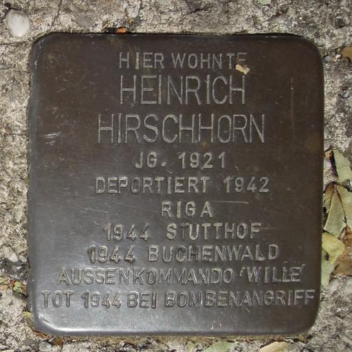 | Keywords: Stolperstein Gelsenkirchen Bismarkstraße 152 Heinrich Hirschhorn.JPG de Stolperstein Gelsenkirchen Bismarkstraße 152 Heinrich Hirschhorn 2015-06-11 12 27 52 own Gmbo 2013 other versions 51 522664194897 7 1026250906023 cc-zero Uploaded with UploadWizard Stolpersteine in Gelsenkirchen |
