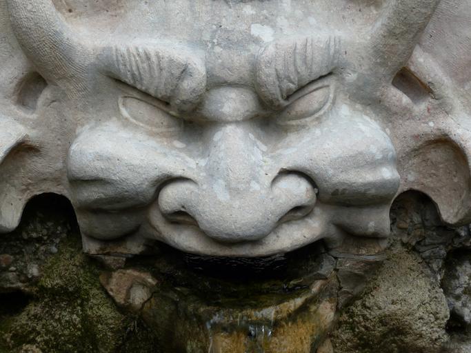 Keywords: stone figure devil grim evil jinx misfortune person hellbrunn salzburg austria