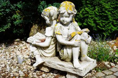 Keywords: stone figure girl read brothers and sisters stonemasonry white gypsum fig chalk figure book sculpture plastic art artistically