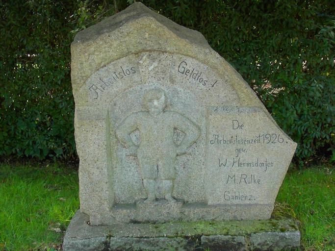 Keywords: stone memorial stone unemployment gahlenz ore mountains unemployed economic crisis art still image monument park