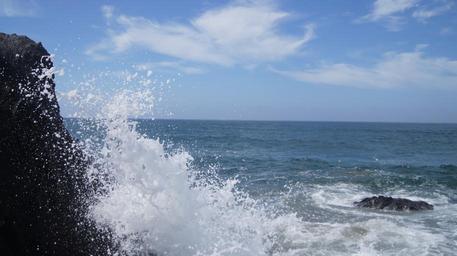 Keywords: stone sky blue sky clouds waves rocking waves splash rocks coast sea blue water stones