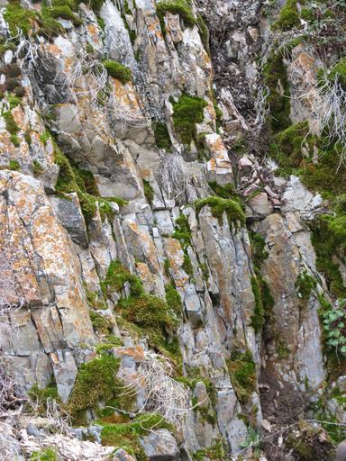 Keywords: stone wall gray green cliff color plants orange texture background nature