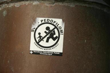 | Keywords: Stop-pedofilom.jpg  Kraków Poland; Pedophilia Anti-paedophilia logo from the National Revival of Poland National Revival of Poland Own 2007-07 Rj1979 Stop-pedofilom svg 24 Anti-sexuality logos Signs in Poland Narodowe Odrodzenie Polski Child sexual abuse Anti-violence Hate for pedophiles Phallic symbols |