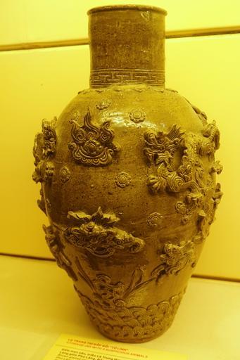 Keywords: Storage jar with four auspicious animals, Phu Lang, Bac Ninh province, Restored Le dynasty, 17th-18th century AD, brown glazed ceramic - National Museum of Vietnamese History - Hanoi, Vietnam - DSC05652.JPG en Exhibit in the National Museum of Vietnamese History Hanoi Vietnam Photography was permitted in the museum without restriction This artwork is old enough so that it is in the public domain 2014-08-06 03 39 00 own Daderot other versions cc-zero Restored Le dynasty ceramics in the National Museum of Vietnamese History Uploaded with UploadWizard |