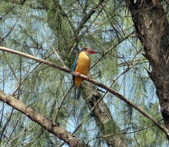 Keywords: stork-billed kingfisher perching casuarina india bird fly wings feather wildlife beak wild freedom outdoor avian majestic creature wilderness nature mammal vertebrate animal