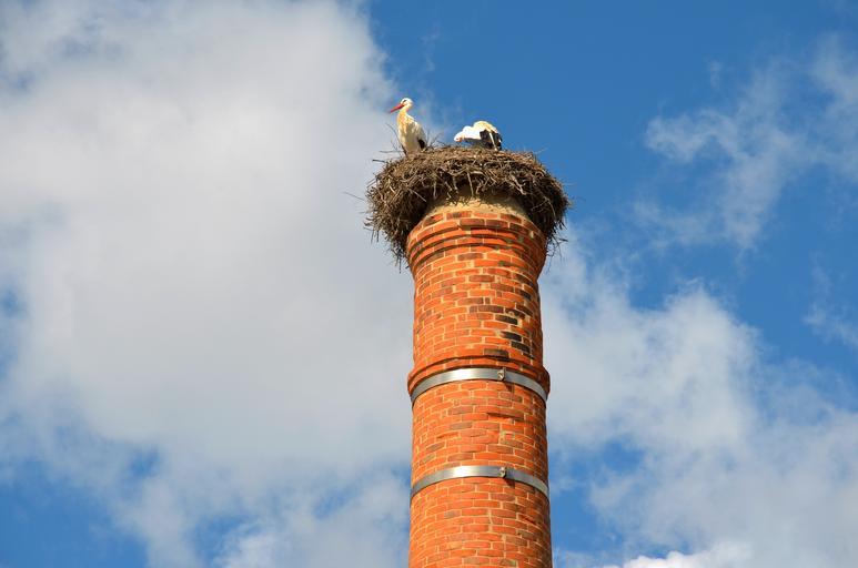 Keywords: stork bird stork's nest nesting chimney nest on the chimney