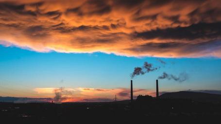 Keywords: storm blue clouds sky nature dramatic weather blue sky landscape sunset yellow sunshine mountain factory smoke