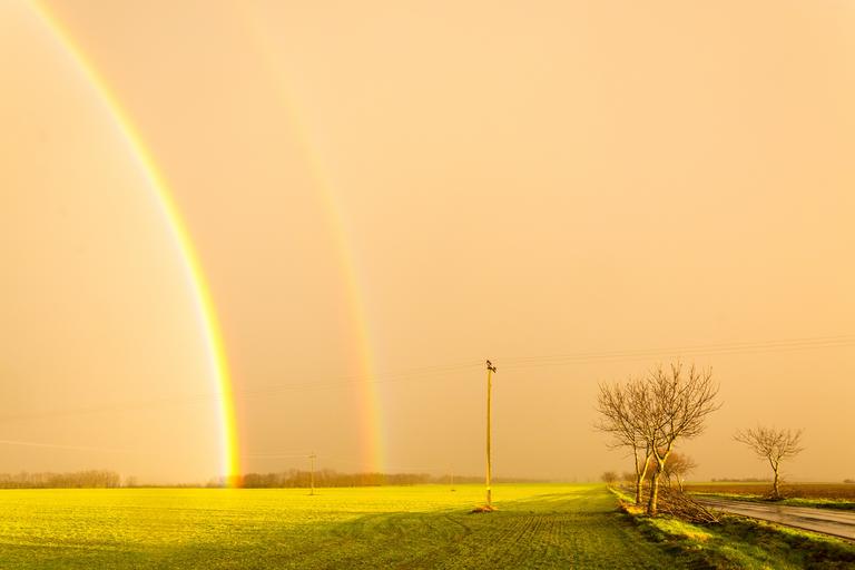 Keywords: storm rainbow sunshine yellow meadow sunset nature