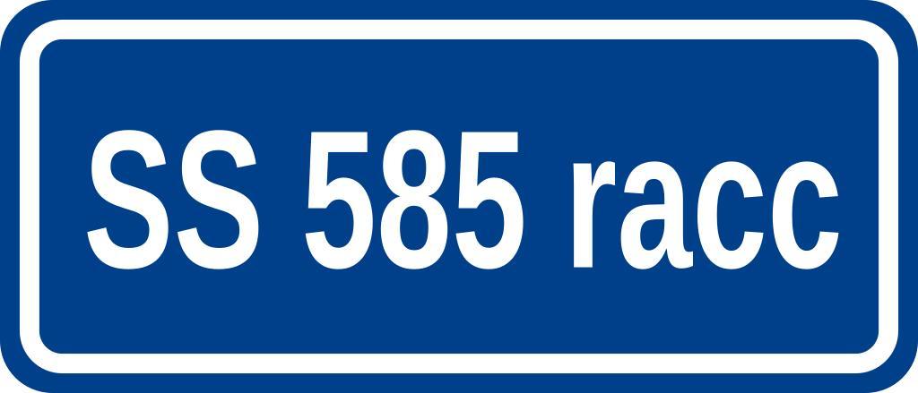 | Keywords: Strada Statale 585racc Italia.svg Icon of state road SS585racc Italy Símbolo de la carretera de estado SS585racc Italia Simbolo della Strada Statale SS585racc Italia Own work Based on ColdShine's work Fatta da me Basato sul lavoro di ColdShine Gigillo83 Diagrams of state road signs of Italy 585 racc 585 number |
