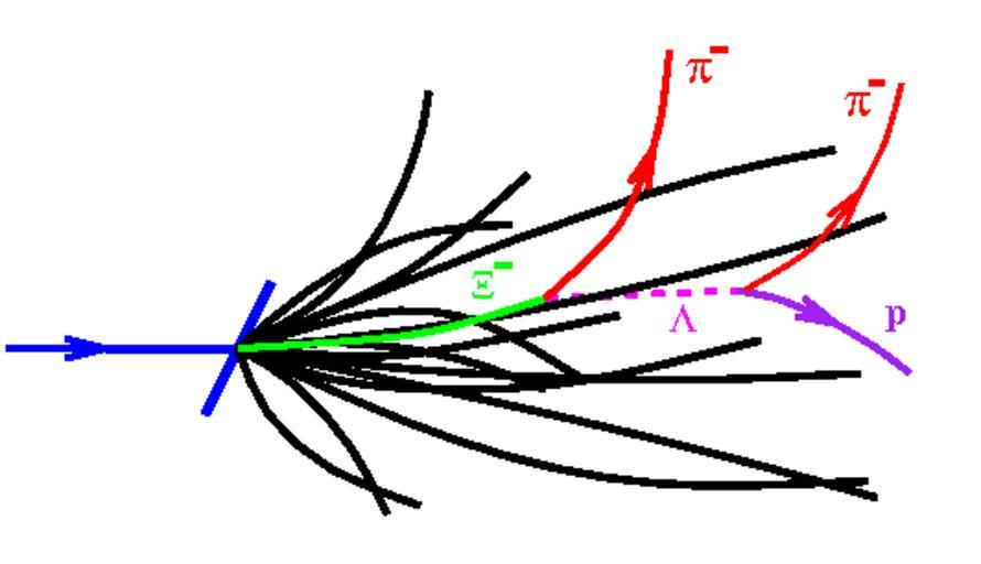 Keywords: Strangeness production 4.gif en Schematic representation of the multistrange Cascade decay chain in a fixed target heavy ion reaction Own Johann137 ca 1999 Particle physics