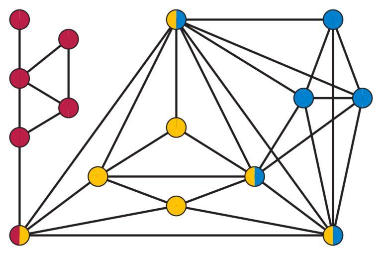 Keywords: Strangulated graph.svg strangulated graph formed by using clique-sums to glue together a maximal planar graph yellow and two chordal graphs red and blue The red chordal graph can in turn be decomposed into clique-sums of four maximal planar graphs two edges and two triangles 2013-08-04 15 30 05 own David Eppstein cc-zero Uploaded with UploadWizard Undirected graphs Files by User David Eppstein from en Graph coloring; vertex |