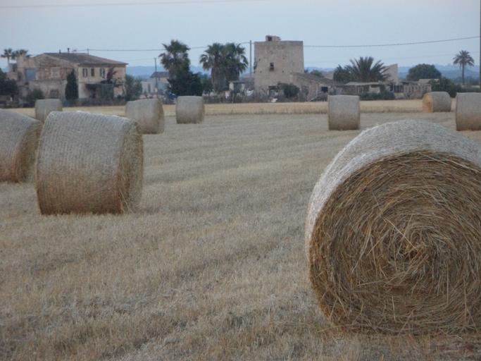 Keywords: straw bales hay bales field abendstimmung mowed straw landscape mallorca rural agriculture hay south fields harvest harvested evening homestead finca farm