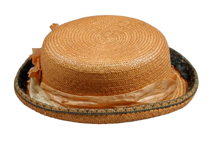 Keywords: straw hat boys pork-pie hat vintage antique 19th century plaited natural straw silk ribbon old silk ribbon design fashion victorian weave transparent background