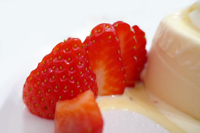 Keywords: strawberry fruit red sweet fruits benefit from cream dessert vanilla ice cream eat ice cream ice delicious sweet dish food feasting macro close