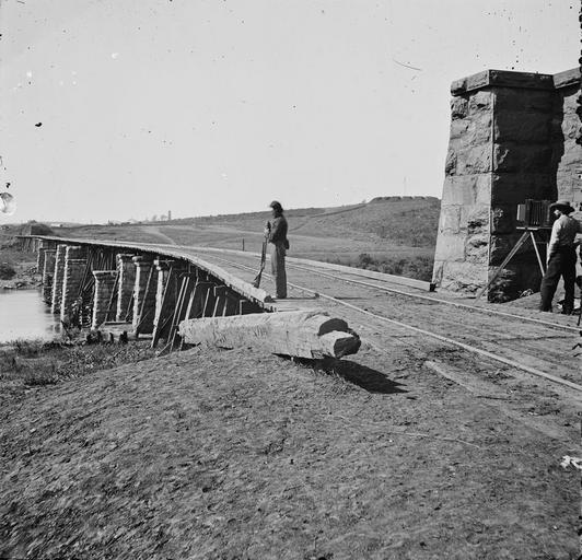 Keywords: Strawberry-plains-bridge-1863.jpg en A Union sentry guards the railroad bridge over the Holston River at Strawberry Plains Tennessee during the Civil War http //hdl loc gov/loc pnp/cwpb 02140 Library of Congress - Prints and Photographs Division Creator George N Barnard ~ 1864 PD-old-100 Knox County Tennessee Jefferson County Tennessee Holston River Bridges over rivers in Tennessee Railway bridges in Tennessee 19th-century bridges in Tennessee 1864 in Tennessee Tennessee in the American Civil War George N Barnard |