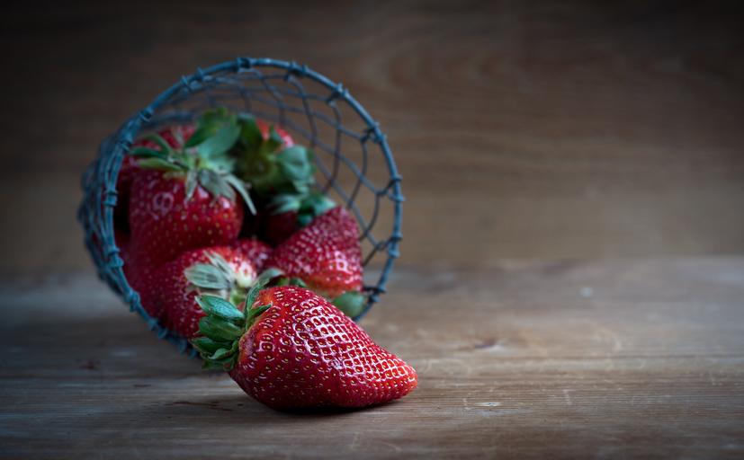 Keywords: strawberry red ripe frisch harvest soft fruit fruit basket metal basket eat food natural product nutrition healthy delicious vitamins minerals vital substances bless you strawberry time berries sweet close food-photography
