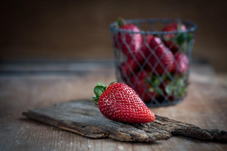 Keywords: strawberry red ripe frisch harvest soft fruit fruit basket metal basket eat food natural product nutrition healthy delicious vitamins minerals vital substances bless you strawberry time berries sweet close food-photography