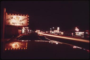 Keywords: STREAKS FROM AUTOMOBILE LIGHTS ON "THE STRIP" AT NIGHT BEGINNING AT BAGNELL DAM, "THE STRIP" WINDS FOR A MILE OR SO... - NARA - 551321.tif Scope and content STREAKS FROM AUTOMOBILE LIGHTS ON THE STRIP AT NIGHT BEGINNING AT BAGNELL DAM THE STRIP WINDS FOR A MILE OR SO ALONG THE RIDGE TOPS TO THE SOUTH ALONG BOTH SIDES OF THE EXTRA-WIDE ASPHALT PAVEMENT TO ACCOMMODATE MORE PARKED CARS CROWD DOZENS OF BOOTHS WITH SHOOTING GALLERIES FORTUNE TELLERS AND ASSORTED ELECTRONIC GAMES THERE ARE CHEAP AND MEDIUM-CHEAP RESTAURANTS WITH INFLATED PRICES CARNIVAL RIDES AND FUNHOUSES SHOPS AND SOUVENIR STANDS CONFUSION PREVAILS WHEN EVEN MODERATE SIZED CROWDS TURN OUT General notes 551321 Local identifier 412-DA-8836 Environmental Protection Agency 12/02/1970 - NARA-Author Kuykendall Bill Photographer 2708009 <br /> Lake of the Ozarks State Park Missouri United States North and Central America state park 3251098 38 083 -92 617 <br /> Still Picture Records Section Special Media Archives Services Division NWCS-S National Archives at College Park 8601 Adelphi Road College Park MD 20740-6001 05/1973 Record group Record Group 412 Records of the Environmental Protection Agency 1944 - 2006 Record group ARC 708 DOCUMERICA The Environmental Protection Agency's Program to Photographically Document Subjects of Environmental Concern compiled 1972 - 1977 Series ARC 542493 File unit File unit ARC Variant control numbers Agency-Assigned Identifier 148/16/008836<br /> NAIL Control Number NWDNS-412-DA-8836 yes Other versions <gallery> File STREAKS_FROM_AUTOMOBILE_LIGHTS_ON_ THE_STRIP _AT_NIGHT_BEGINNING_AT_BAGNELL_DAM _ THE_STRIP _WINDS_FOR_A_MILE_OR_SO _-_NARA_-_551321 tif tif File STREAKS_FROM_AUTOMOBILE_LIGHTS_ON_ THE_STRIP _AT_NIGHT_BEGINNING_AT_BAGNELL_DAM _ THE_STRIP _WINDS_FOR_A_MILE_OR_SO _-_NARA_-_551321 jpg jpg </gallery> NARA-cooperation PD-USGov NARA TIF images with categorized JPGs Signs in Missouri Chiromancy |