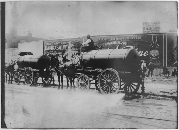 Keywords: Street cleaning equipment. St. Louis - NARA - 283609.jpg Scope and content Photograph of mule drawn street cleaning equipment and crews on both residential and business streets Four pictures show brick streets in need of cleaning In the background of General notes 283609 Local identifier U S District Court for the Eastern St Louis Division of the Eastern District of Missouri 02/28/1887 - NARA's Central Plains Region Kansas City NREA 400 West Pershing Road Kansas City MO 64108 other date circa 1900 1910 Record group Record Group 21 Records of District Courts of the United States 1685 - 2004 Record group ARC 350 Equity and Law Case Files compiled 1857 - 1938 Series ARC 562790 File unit St Louis Street Flushing Company v American Street Flushing Company 1900 - 1910 File unit ARC 283607 Variant control numbers NAIL Control Number NRE-21-EMOSTLE L-E L9028-STLCC32 Other versions <gallery> File Street_cleaning_equipment _St _Louis_-_NARA_-_283609 tif tif File Street_cleaning_equipment _St _Louis_-_NARA_-_283609 jpg jpg </gallery> NARA-cooperation PD-USGov Horse-drawn wagons in the United States Street cleaning in the United States |