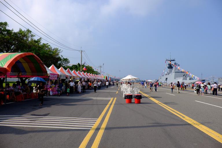 | Keywords: Street Food Booths beside Pier Road of Zuoying Naval Base in Morning 20151024a.jpg zh-tw 2015年左營軍港營 開放活動, 五號碼頭臨港路的飲食攤 和去年相比,路中多了 列 天咖啡座 2015-10-24 08 57 25 Own 玄史生 other versions 2015 Zuoying Naval Base Open Day Street food in Taiwan 玄史生写 文庫 Taken with Fujifilm X-T1 Uploaded with UploadWizard cc-zero |
