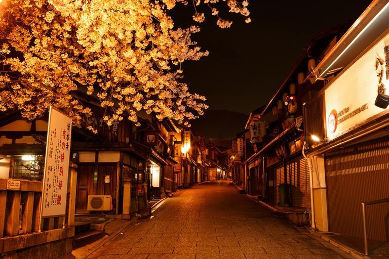 Keywords: street japan city asian travel scene night light road kyoto town life old day evening canon
