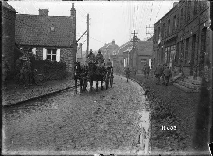 | Keywords: blackandwhite monochrome road outdoor alley black and white Street scene in Beauvois, France, soon after its capture by New Zealand troops during World War I. Shows New Zealand soldiers riding a horse-drawn cart along a village street. Photograph taken ca 15 October 1918 by Henry Armytage Sanders. Inscriptions: Inscribed - Marginal notes on negative -bottom left: H1083. Quantity: 1 b&w original negative(s). Physical Description: Dry plate glass negative 4 x 5 inches Street scene in Beauvois, France, soon after its capture by New Zealand troops in World War I. Royal New Zealand Returned and Services' Association :New Zealand official negatives, World War 1914-1918. Ref: 1/2-013646-G. Alexander Turnbull Library, Wellington, New Zealand. natlib.govt.nz/records/23230501 Street scene in Beauvois, France, soon after its capture by New Zealand troops during World War I. Shows New Zealand soldiers riding a horse-drawn cart along a village street. Photograph taken ca 15 October 1918 by Henry Armytage Sanders. Inscriptions: Inscribed - Marginal notes on negative -bottom left: H1083. Quantity: 1 b&w original negative(s). Physical Description: Dry plate glass negative 4 x 5 inches Street scene in Beauvois, France, soon after its capture by New Zealand troops in World War I. Royal New Zealand Returned and Services' Association :New Zealand official negatives, World War 1914-1918. Ref: 1/2-013646-G. Alexander Turnbull Library, Wellington, New Zealand. natlib.govt.nz/records/23230501 |