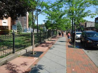 Keywords: Street scene with walkway and cars and buildings and trees.jpg en Street scene in Elizabeth New Jersey 2016-08-09 09 31 17 own Tomwsulcer other versions cc-zero Street scenes Downtown Elizabeth