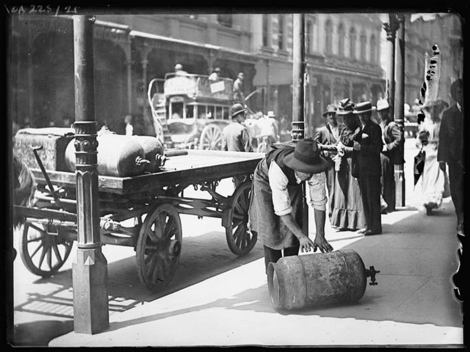 | Keywords: blackandwhite monochrome photo border black and white Streetscenes including pedestrians on King Street, George Street, Pitt Street, plus horsedrawn vehicles and activities on York and Castlereagh Streets, including the delivery of ice, bottle and gas cylinders. Format: Glass photonegative Find more detailed information about this photographic collection: acms.sl.nsw.gov.au/item/itemDetailPaged.aspx?itemID=404293 From the collection of the State Library of New South Wales www.sl.nsw.gov.au Streetscenes including pedestrians on King Street, George Street, Pitt Street, plus horsedrawn vehicles and activities on York and Castlereagh Streets, including the delivery of ice, bottle and gas cylinders. Format: Glass photonegative Find more detailed information about this photographic collection: acms.sl.nsw.gov.au/item/itemDetailPaged.aspx?itemID=404293 From the collection of the State Library of New South Wales www.sl.nsw.gov.au |