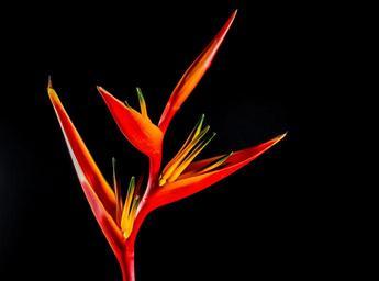 Keywords: strelitzia blossom bloom flower red orange yellow caudata greenhouse strelitziaceae close