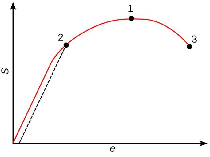 MAKE A MEME View Large Image Stress-strain curve numbered.svg Stress-strain curve for ductile materials with no well defined yield point 1 Ultimate tensile strength 2 Offset yield strength 3 Fracture stress S Engineering stress e Engineering strain Own 2007-08-23 ...