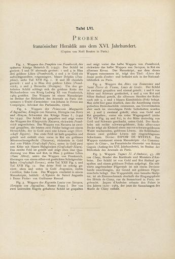 | Keywords: Ströhl Heraldischer Atlas t56 1.jpg Hugo Gerhard Ströhl Heraldischer Atlas Stuttgart 1899 Tafel 56 Proben französischer Heraldik aus dem XVI Jahrhundert Copien von Noel Bouton in Paris Text http //austria-forum org/wbg/ heraldischeratl00de1899kfu austria-forum org 1899 Creator Hugo Gerhard Ströhl 1919 Heraldischer Atlas Ströhl |