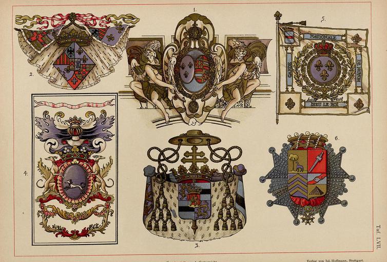 | Keywords: Ströhl Heraldischer Atlas t57 2.jpg Hugo Gerhard Ströhl Heraldischer Atlas Stuttgart 1899 Tafel 57 Proben französischer Heraldik aus dem XVII XVIII und den ersten Jahren des XIX Jahrhunderts Copien von Noel Bouton in Paris Tafel http //austria-forum org/wbg/ heraldischeratl00de1899kfu austria-forum org 1899 Creator Hugo Gerhard Ströhl 1919 Heraldischer Atlas Ströhl |
