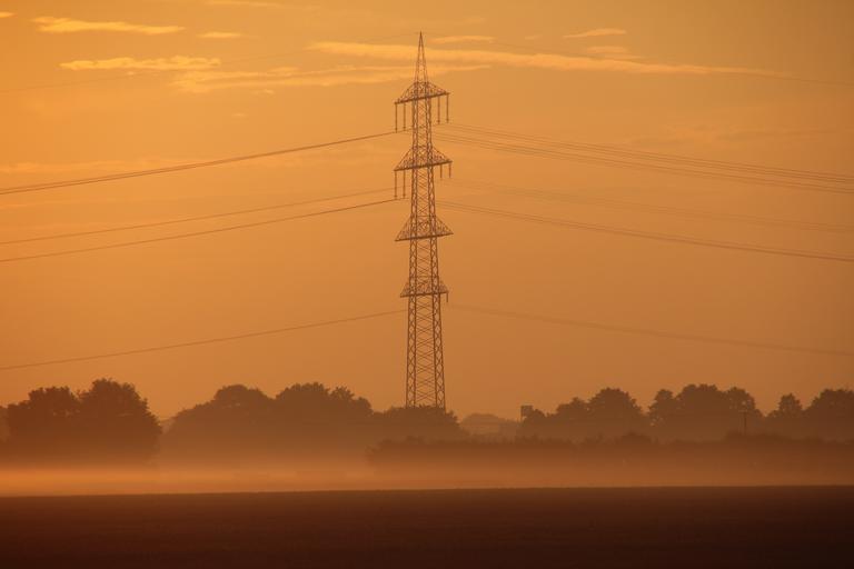 Keywords: strommast landline sunrise fog mood morgenrot haze