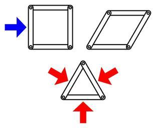 | Keywords: Structural rigidity basic examples.svg en Demonstration of rigid and flexible graphs Graphs are drawn as hinges connected by rigid rods The cycle graph C<sub>4</sub> drawn as a square is flexible because a force can tilt it over into a parallelogram The complete graph K<sub>3</sub> drawn as a triangle is rigid because no force applied in any direction will cause it to move own User Dcoetzee 2013-03-24 Cc-zero Cycle graph 3 Cycle graph 4 | ||||