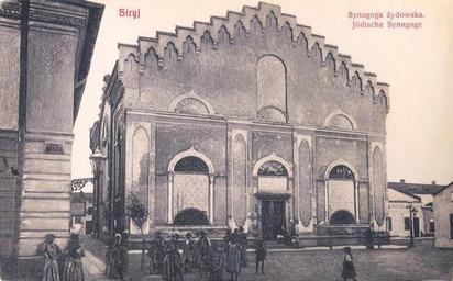 | Keywords: Stryi,Great synagogue.jpg ru Большая синагога в Ст ые пост оена в 1817 г восстановлена после пожа а в 1886 г 1900 1910 www sztetl org pl/pl/article/stryj/11 synagogi-domy-modlitwy-i-inne/19340 wielka-synagoga-ul-michnowskowo-/ author other versions PD-Art Historical images of Stryi Synagogues in Lviv Oblast Postcards of Austria-Hungary Buildings in Stryi |